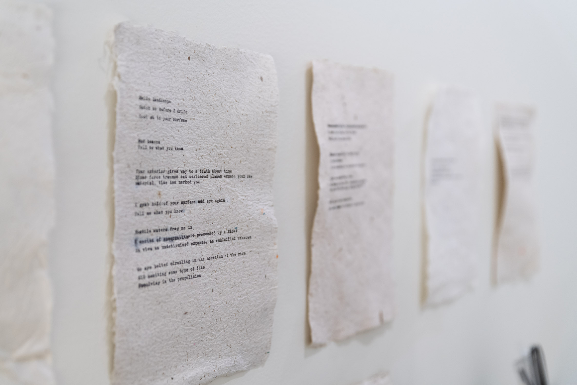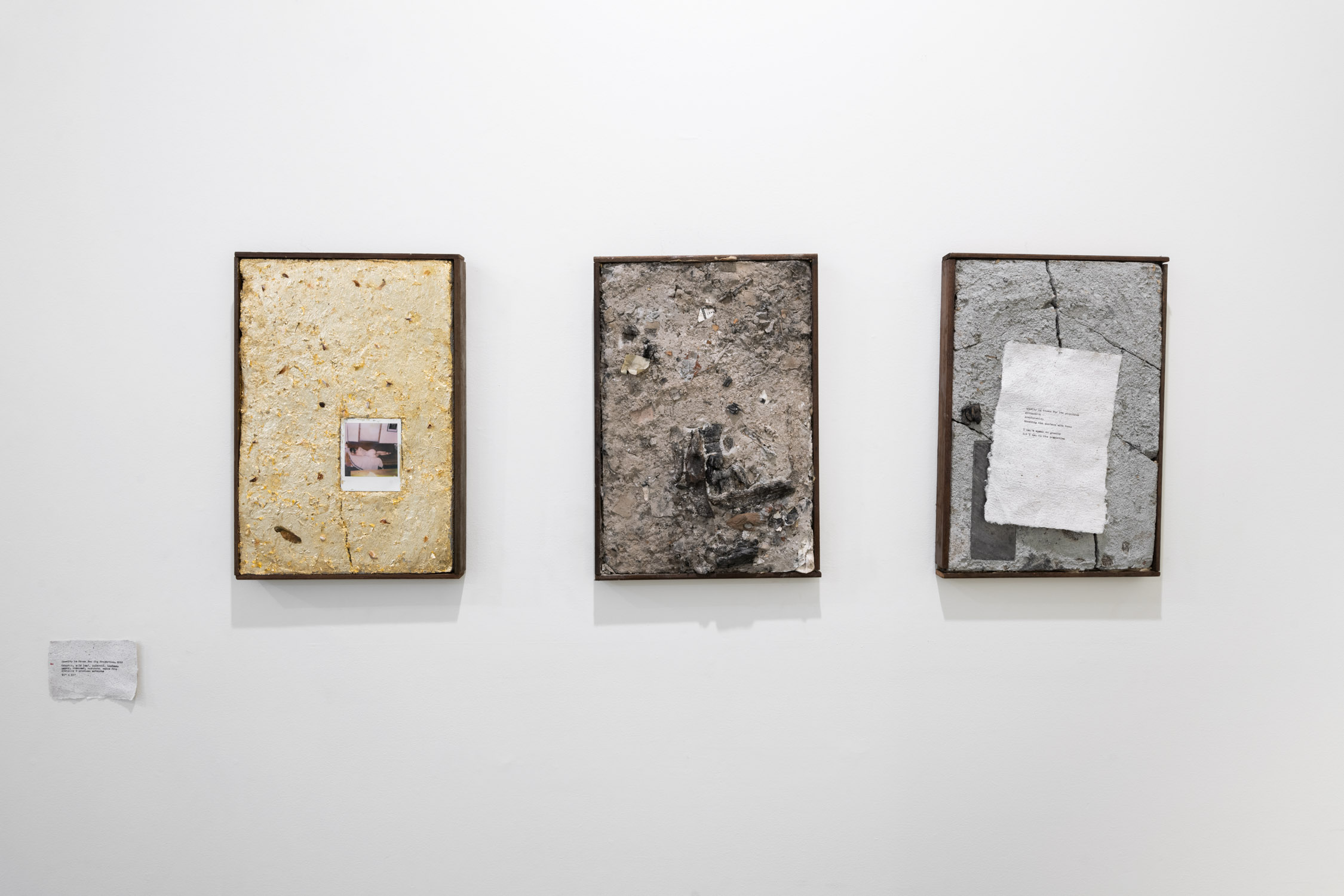 Series of collages on concrete, writings on handmade paper